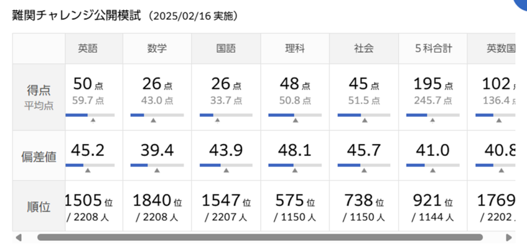 中2 2月難関チャレンジ公開模試 2026 3/17 中2 2026年3月17日 難チャレと駿台は相性が悪い! とのこと。 中2 よかったらシェアしてね! URLをコピーしました! URLをコピーしました! 中2 2月スタンダードテスト 中2 3月必勝志望校判定摸試→特訓クラスへ昇格! この記事を書いた人 sokeimama 関連記事 中2 3月必勝志望校判定摸試→特訓クラスへ昇格! 2026年3月17日 中2 2月スタンダードテスト 2026年3月17日 中2 1月駿台学力テスト 2026年3月17日 中2 1月特訓クラス・SKクラス選抜試験→そしてレギュラー落ち 2026年3月17日 中2 12月ハイレベルテスト 2026年3月17日 中2 12月難関チャレンジ公開模試 2026年3月17日 中2 11月駿台学力テスト 2026年3月17日 中2 11月特訓クラス・SKクラス選抜試験 2026年3月17日 コメント コメントする コメントをキャンセルコメント ※ 名前 ※ メール ※ サイト 次回のコメントで使用するためブラウザーに自分の名前、メールアドレス、サイトを保存する。