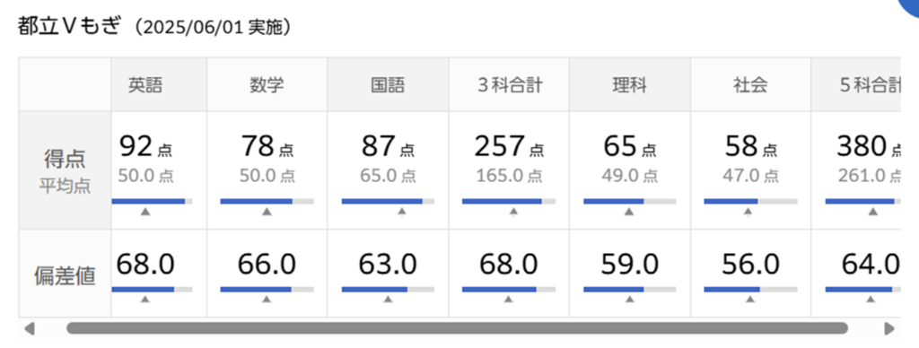 理社をやっている姿をあまり見ないので、内申の悪さもあり、このテストを機に5科から3科へ変更!